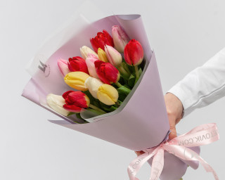 Состав: тюльпан 15 шт., пленка матовая 2 шт., лента атласная 1 шт.